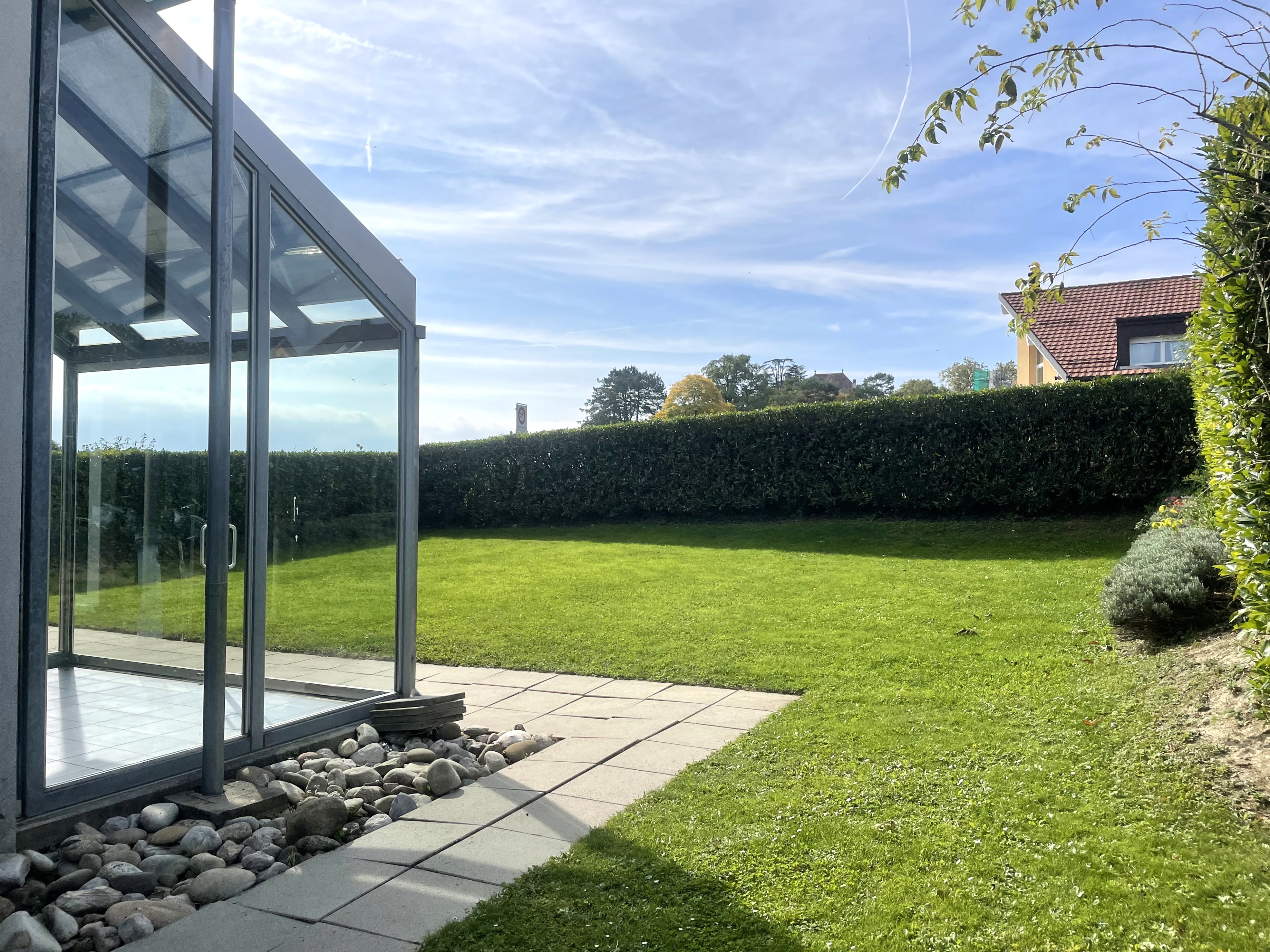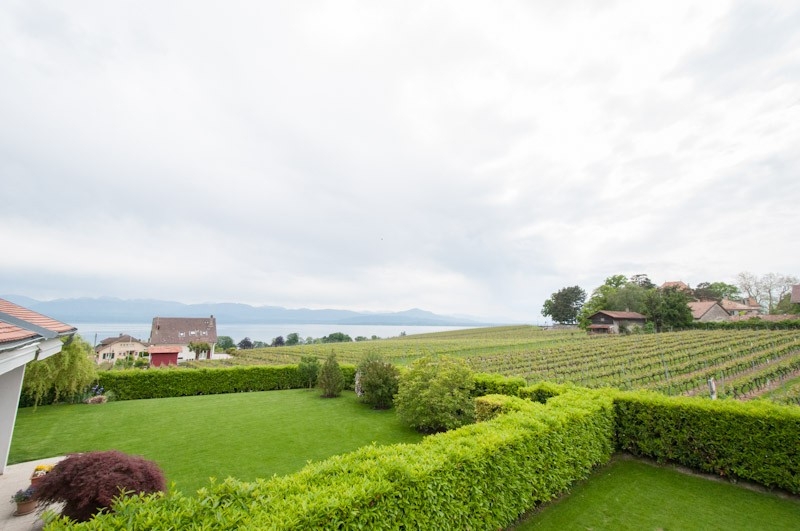 Profitez d’un jardin entièrement clôturé, idéal pour les enfants, et d’une vue sur le lac, les Alpes et les vignes environnantes depuis le balcon.