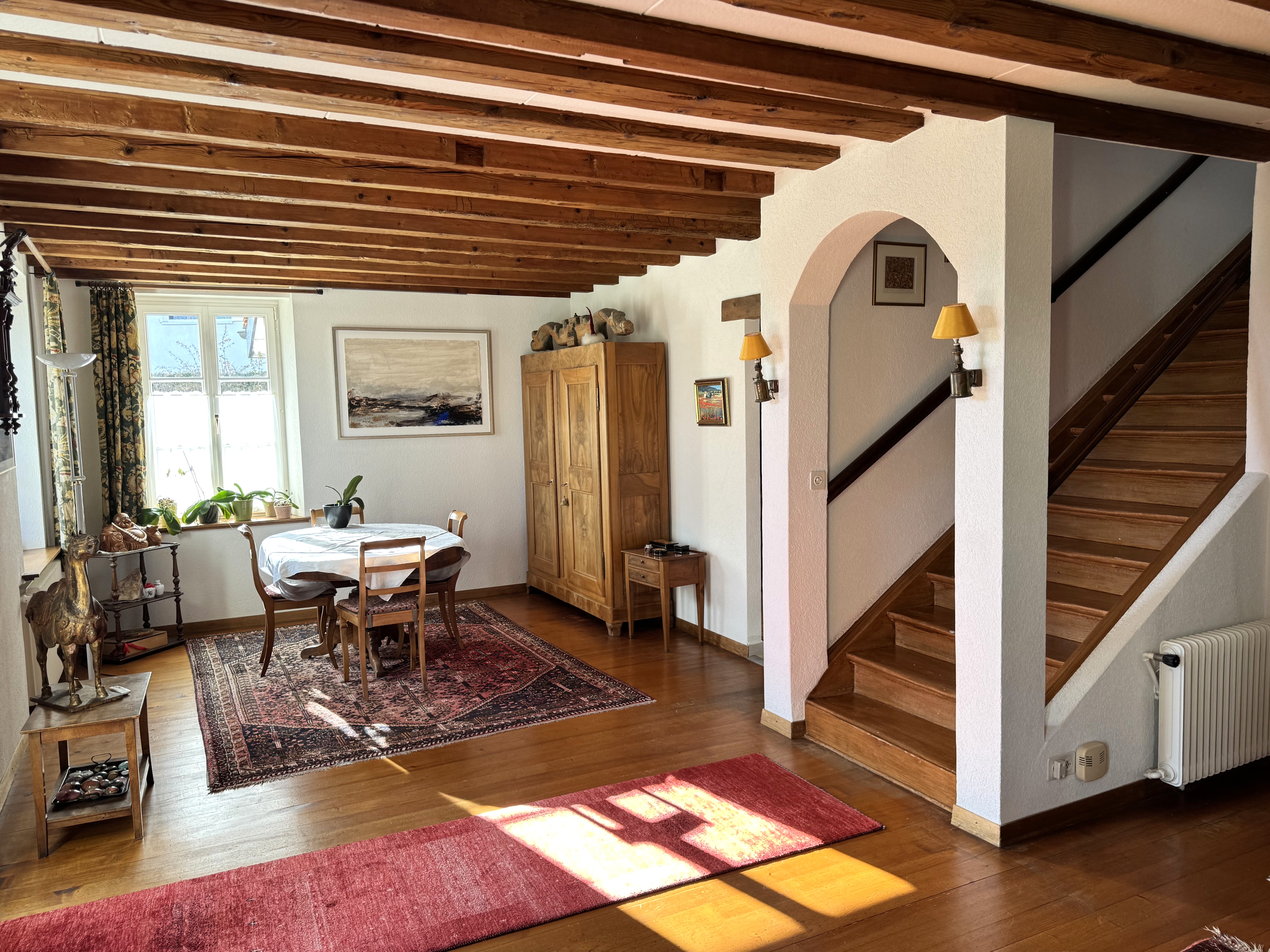 Belle villa individuelle au cachet authentique, offrant de beaux volumes et du charme grâce à ses vieux parquets et poutres apparentes.