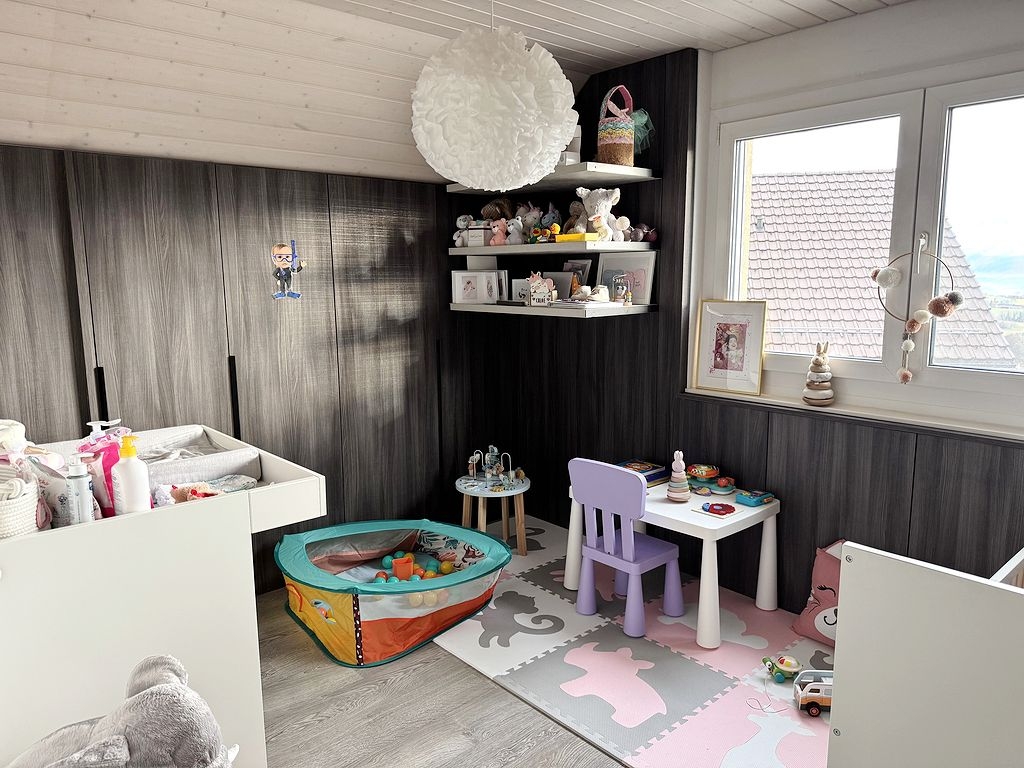 Idéalement située dans le village de Le Vaud, à seulement 20mn de Gland, cette villa jumelle bénéficie d’un environnement verdoyant et d’un jardin soigneusement arborisé.