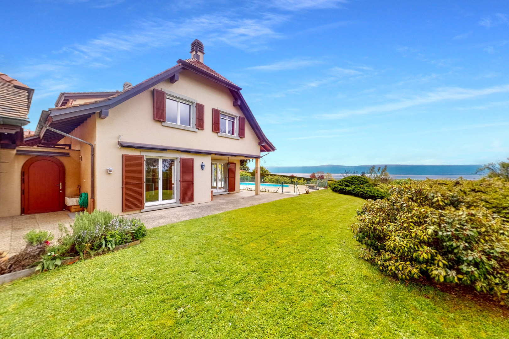 Belle villa de style Vaudois située dans un quartier calme et résidentiel. Orientée Sud, elle profite d’une piscine chauffée et d'un joli jardin entièrement clôturé, bénéficiant d’un beau dégagement sur le lac et les Alpes.